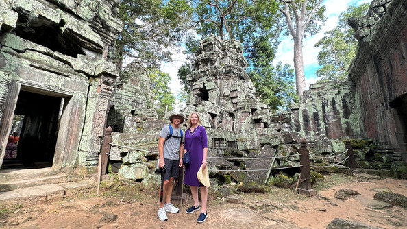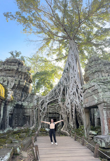 In this post, I am highlighting two unique temples: Banteay Srei and Ta Prohm. Banteay Srei is a stunning pink sandstone temple, renowned for its intricate carvings, with hardly any space left untouched. Ta Prohm, also known as "the Lara Croft temple," gained fame as several scenes from the movie were filmed there. This temple features centuries-old trees growing out of the rock and stone, both between and within the buildings. As a somewhat avid photographer, I was utterly captivated by these temples. They were incredible to behold, yet each temple was completely distinct. Every king who ruled desired to have his own temple and constructed each one differently.