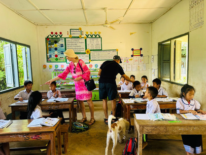 During our trip, we visited a school in a small village where we had the opportunity to give pads of paper and pencils to the elementary school students. The kids were lovely, and it was a memorable experience interacting with both the teacher and the students.